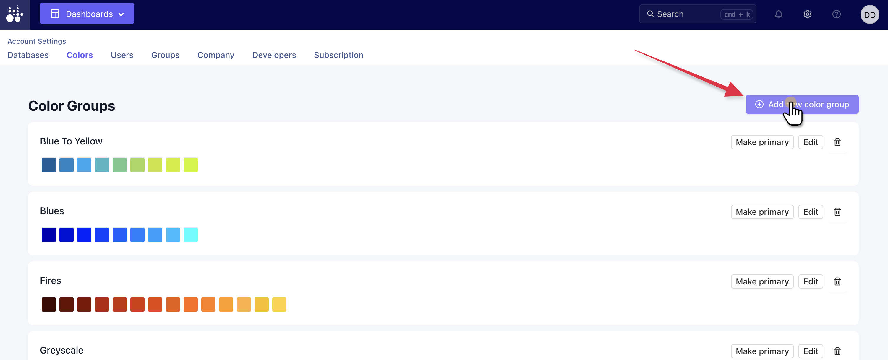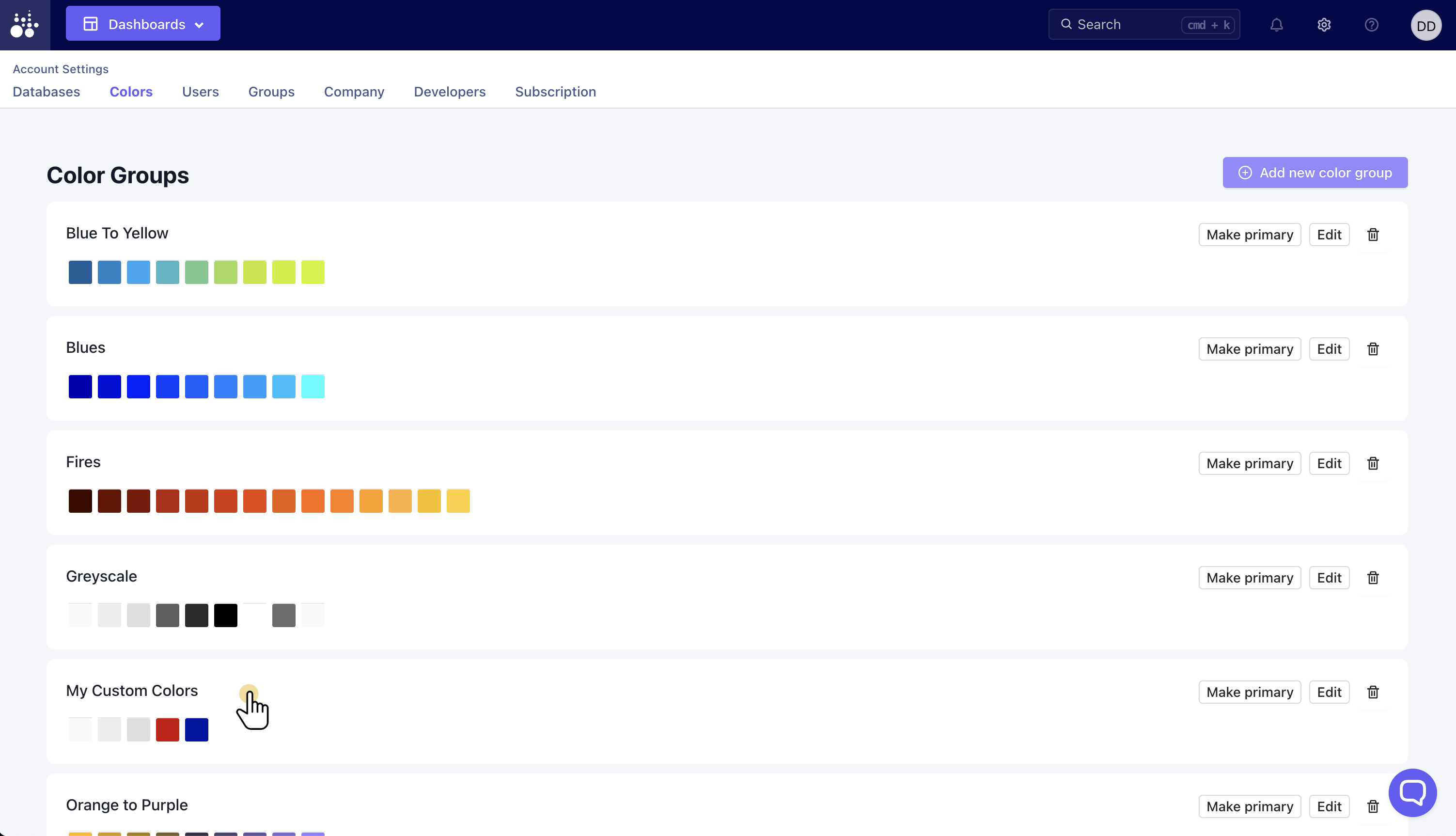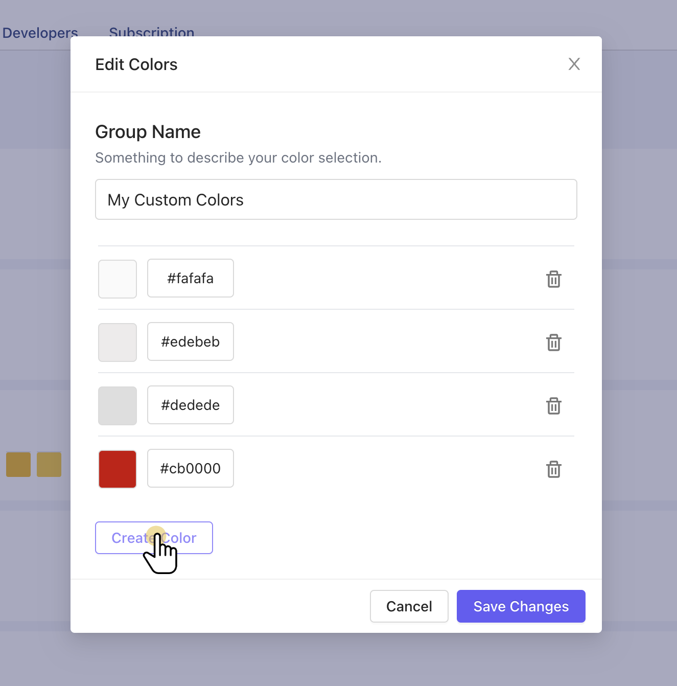 Once you have all the colors you need in your palette, go ahead and Save changes to add your new color group. Color Groups are account wide so anyone with access can use the presets.