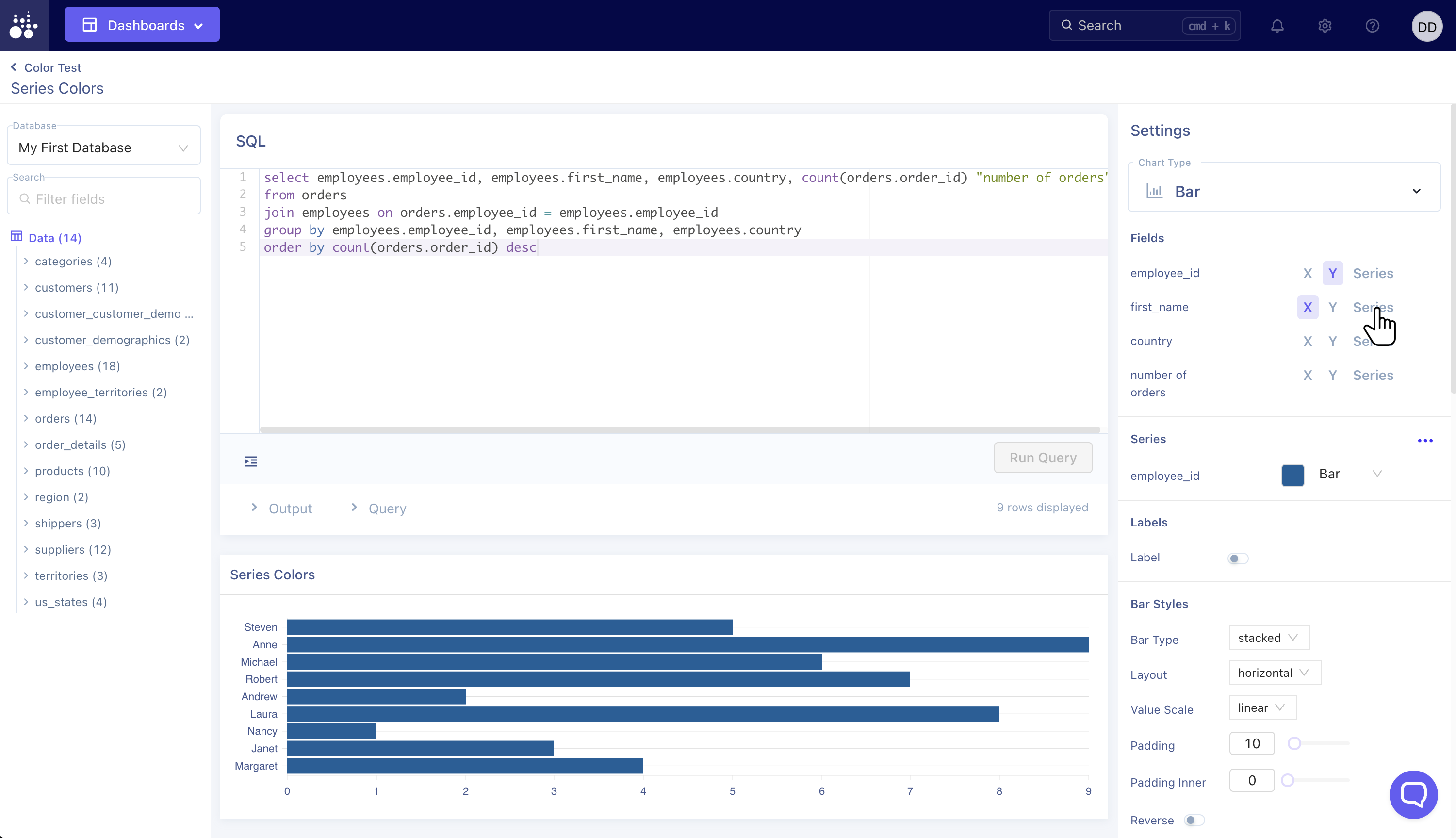 Choose which field should be grouped as the Series.