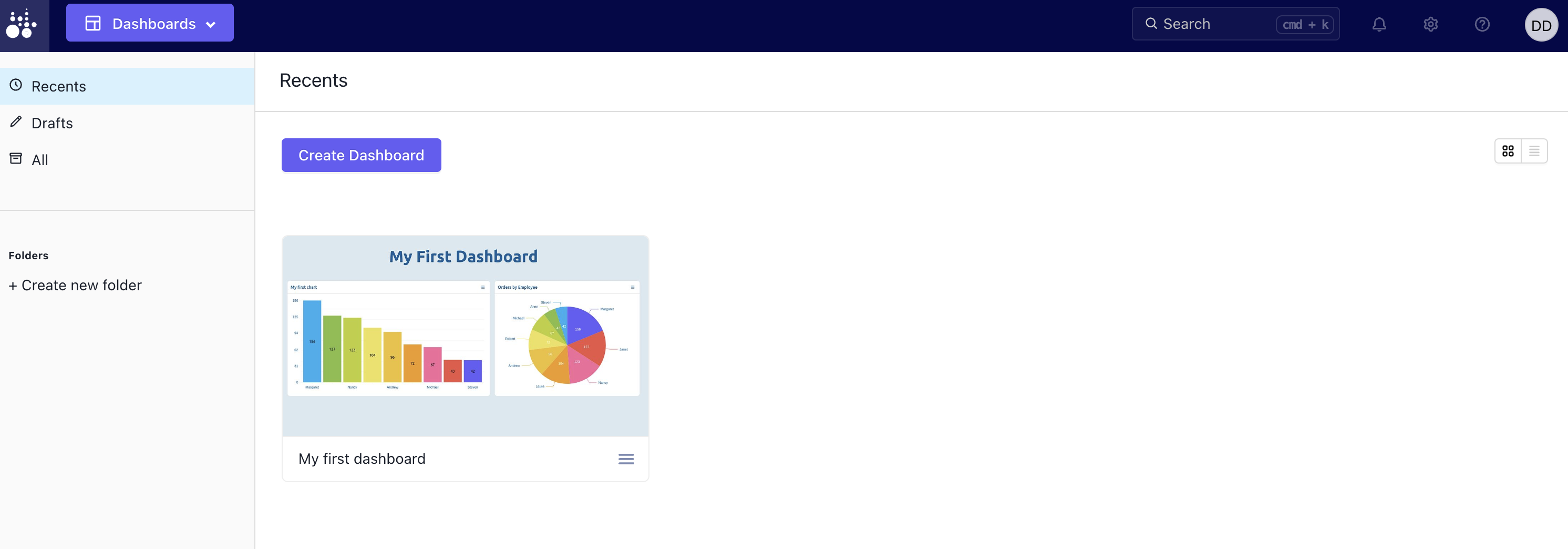 Once logged in the Home screen will be displayed showing your most recent dashboards.